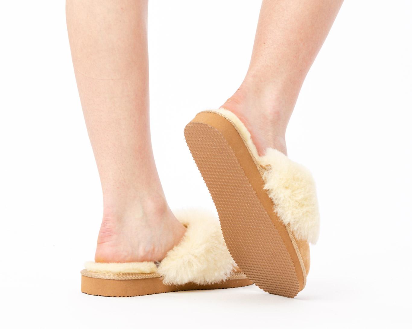 Damskie Ocieplane Pantofle – Domowe Kapcie ze Skóry Owczej