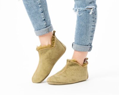 Damskie Zielone Pantofle ze Skóry Owczej – Mikołajki Dwoina