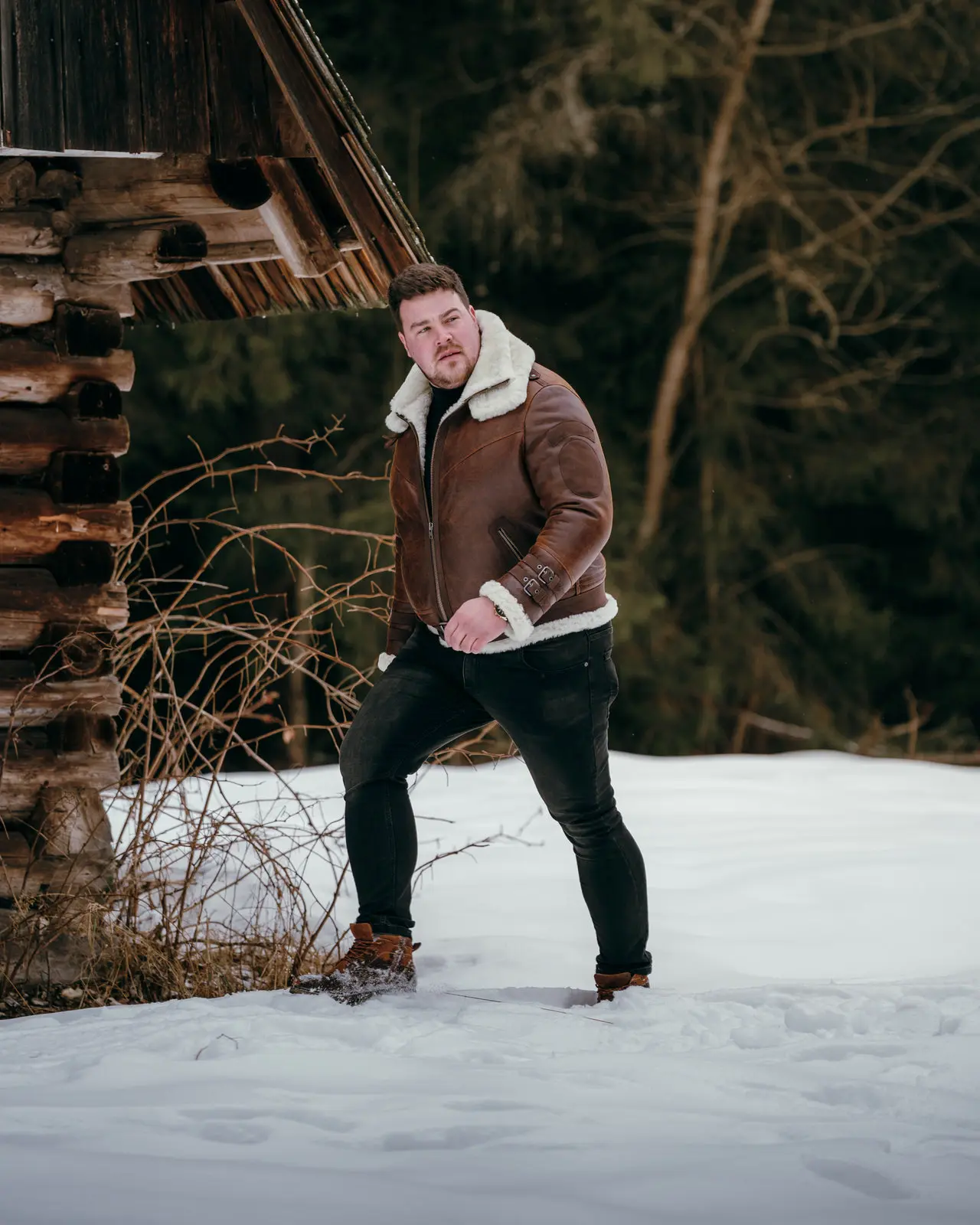 Kożuch pilotka to model, który nigdy nie wychodzi z mody. Inspirowany klasycznymi kurtkami lotniczymi, wykonany z naturalnej skóry jagnięcej o pięknym, głębokim brązie. Ciepły, wytrzymały i niezwykle komfortowy – stworzony z myślą o mężczyznach, którzy cenią solidne rzemiosło i ponadczasowy styl.