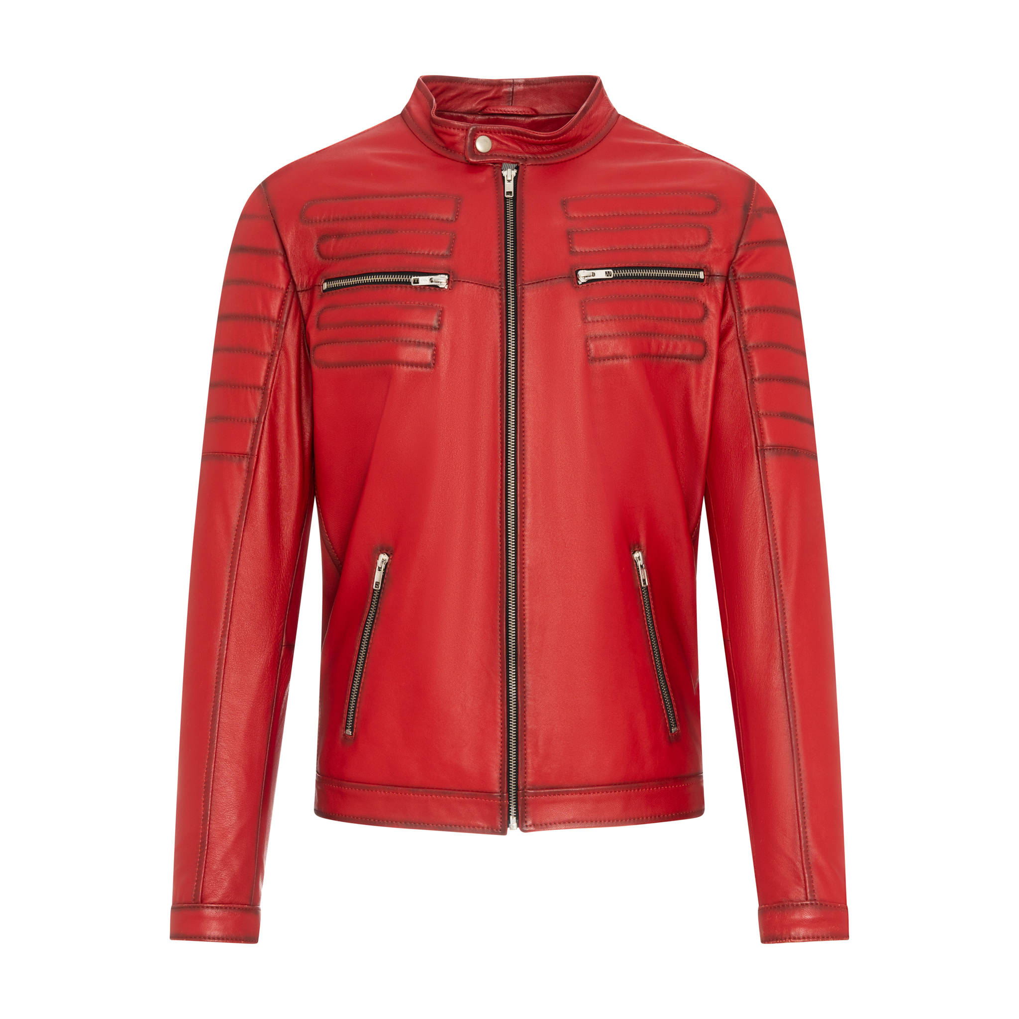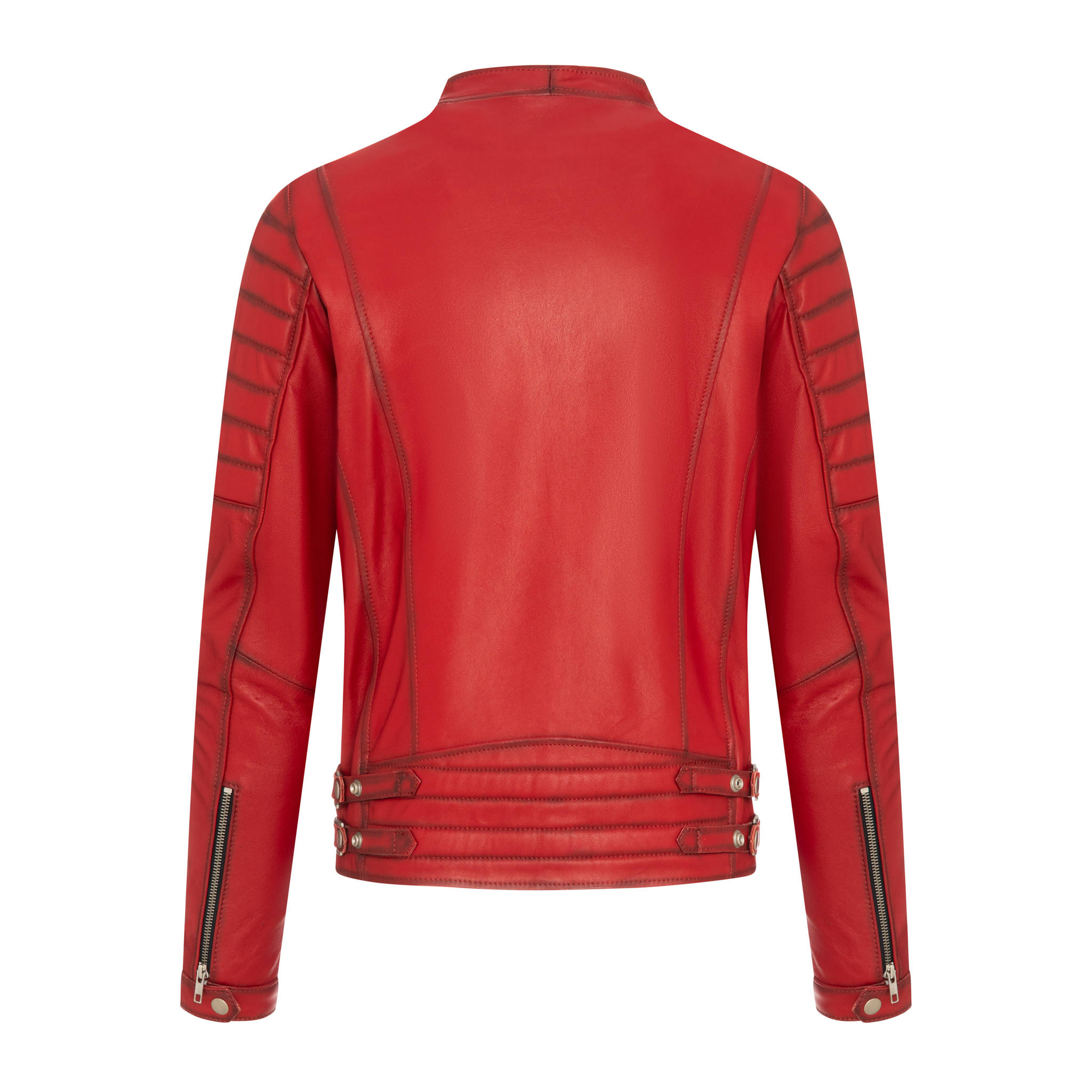Męska Skórzana Kurtka Motocyklowa Czerwona – PEDRO