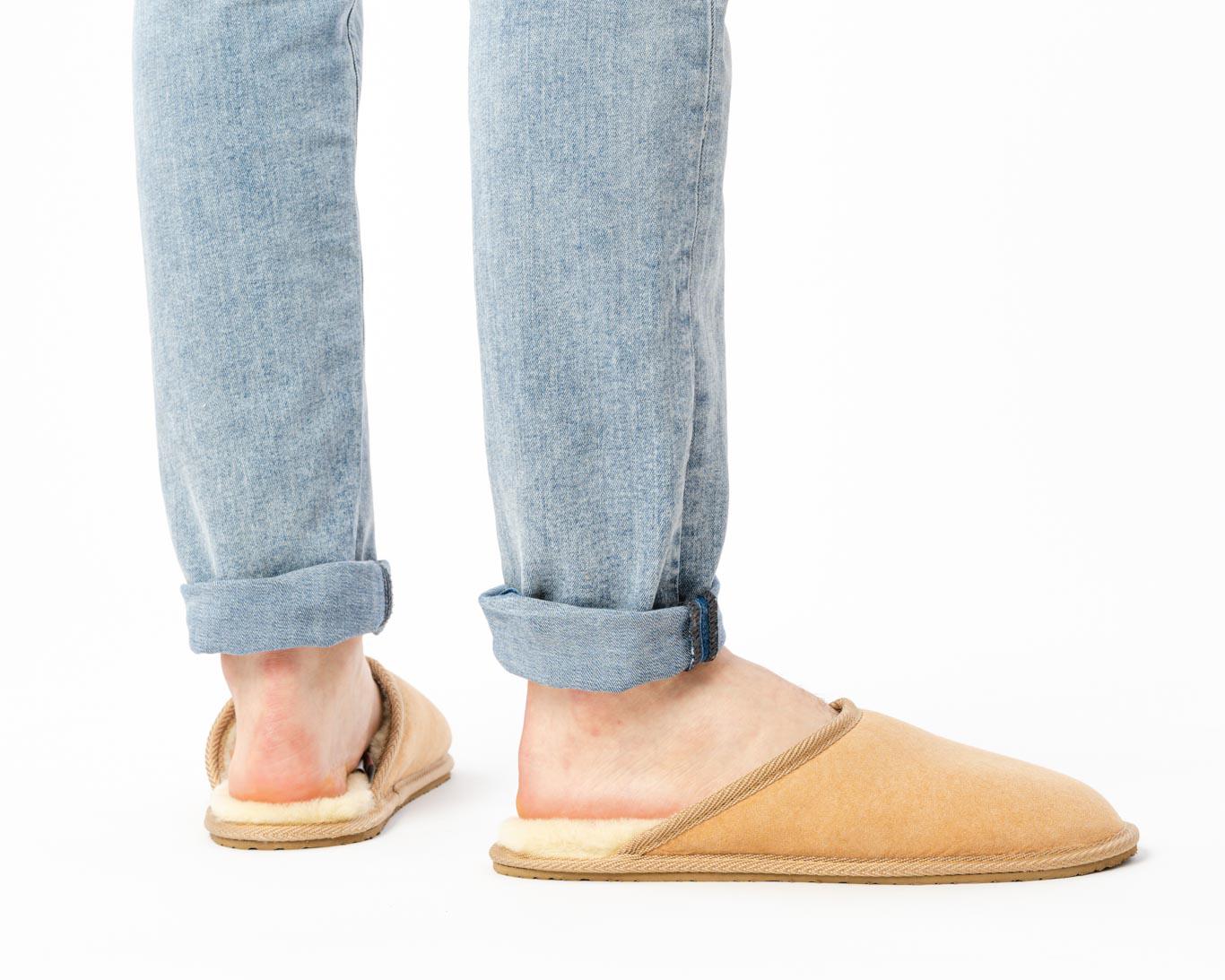 Męskie Ocieplane pantofle skórzane – Kapcie domowe ze skóry owczej