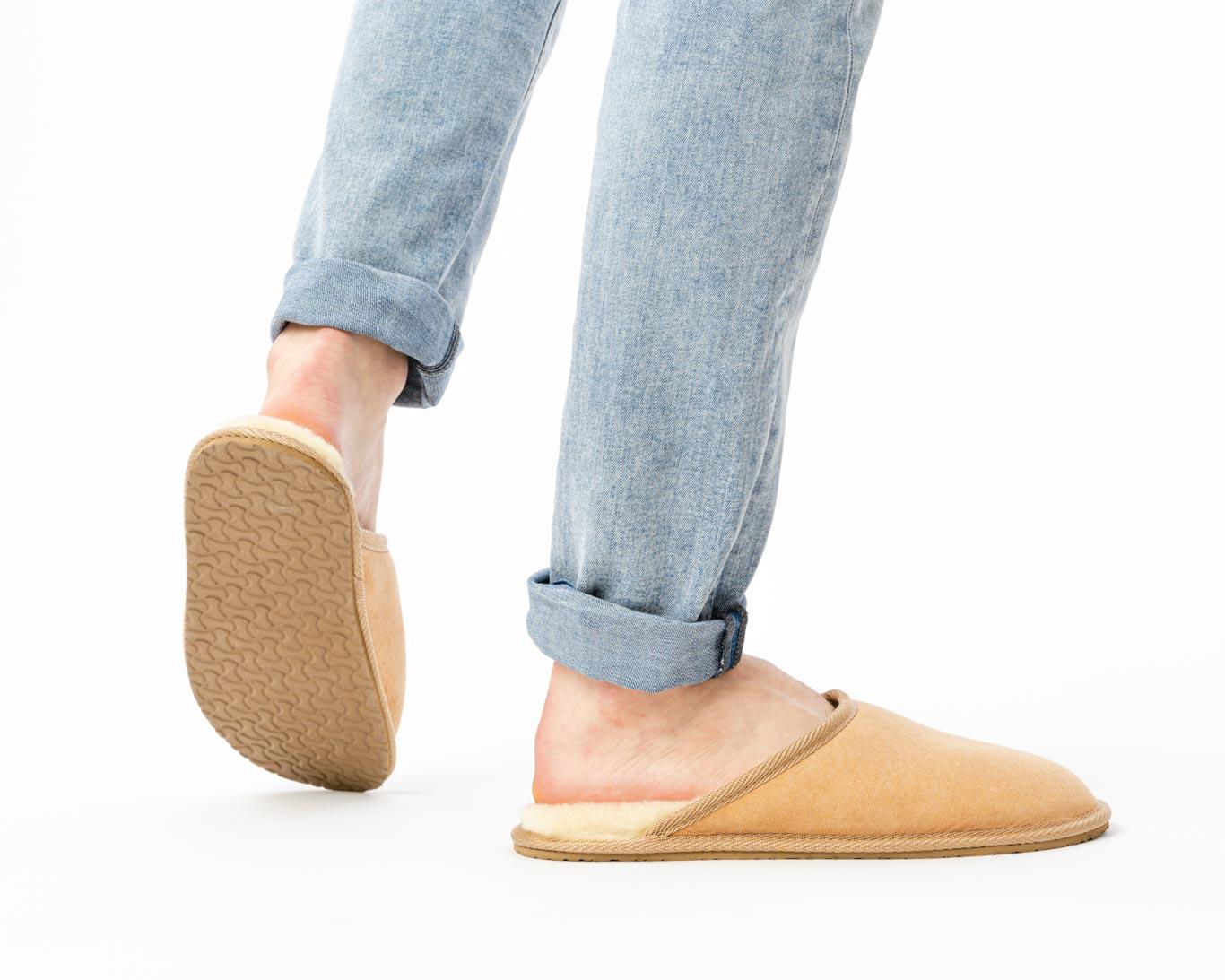 Męskie Ocieplane pantofle skórzane – Kapcie domowe. wykonane z autentycznej skóry owczej i delikatnej wełny, oferują niezrównany komfort i elegancję. Mocne szycie, elastyczna podeszwa oraz subtelna barwa naturalnego beżu tworzą produkt, który doskonale dopełni każdą garderobę. Idealne na każdą porę roku.