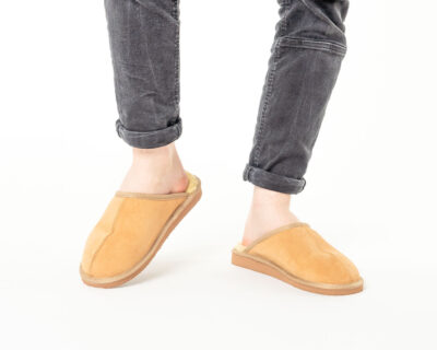 Męskie Ocieplane pantofle Wsuwka – beżowe kapcie – Wykonane z autentycznej skóry owczej i wełny, te beżowe kapcie oferują niezrównany komfort i elegancję. Solidne wykonanie i elegancki design sprawiają, że są idealne do użytku domowego.