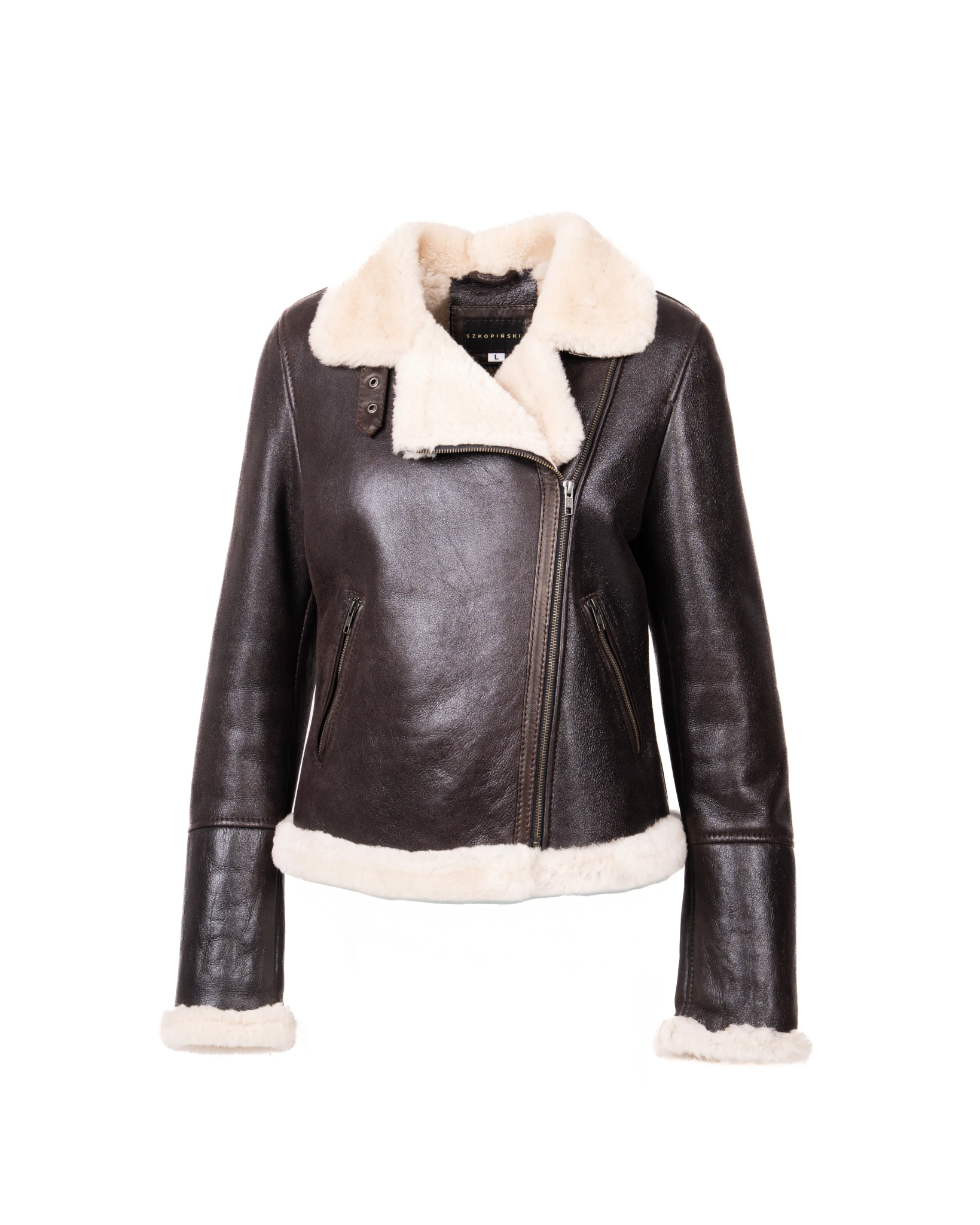 Brązowa skóra o subtelnym połysku nadaje całości eleganckiego charakteru, a jasne futro merino tworzy wyraźny kontrast, który przyciąga wzrok i podkreśla luksusowy charakter kurtki. Krótki fason pięknie podkreśla sylwetkę i sprawia, że model Valentina pasuje zarówno do codziennych stylizacji, jak i bardziej eleganckich zestawów.