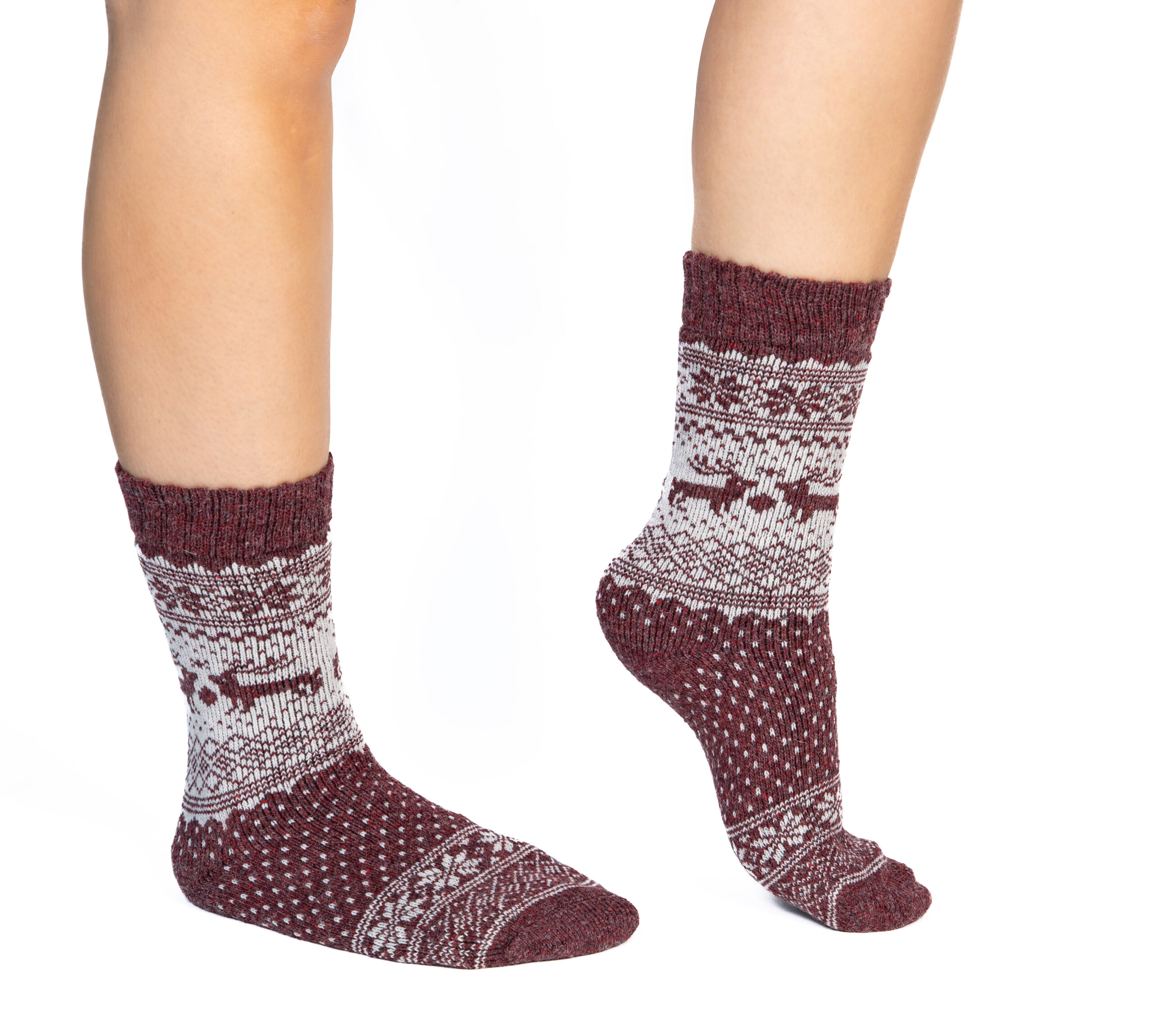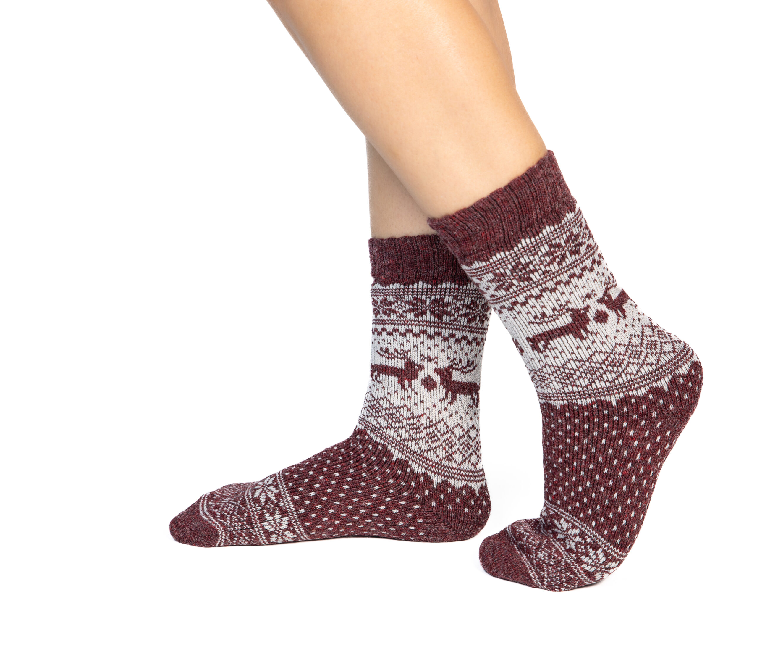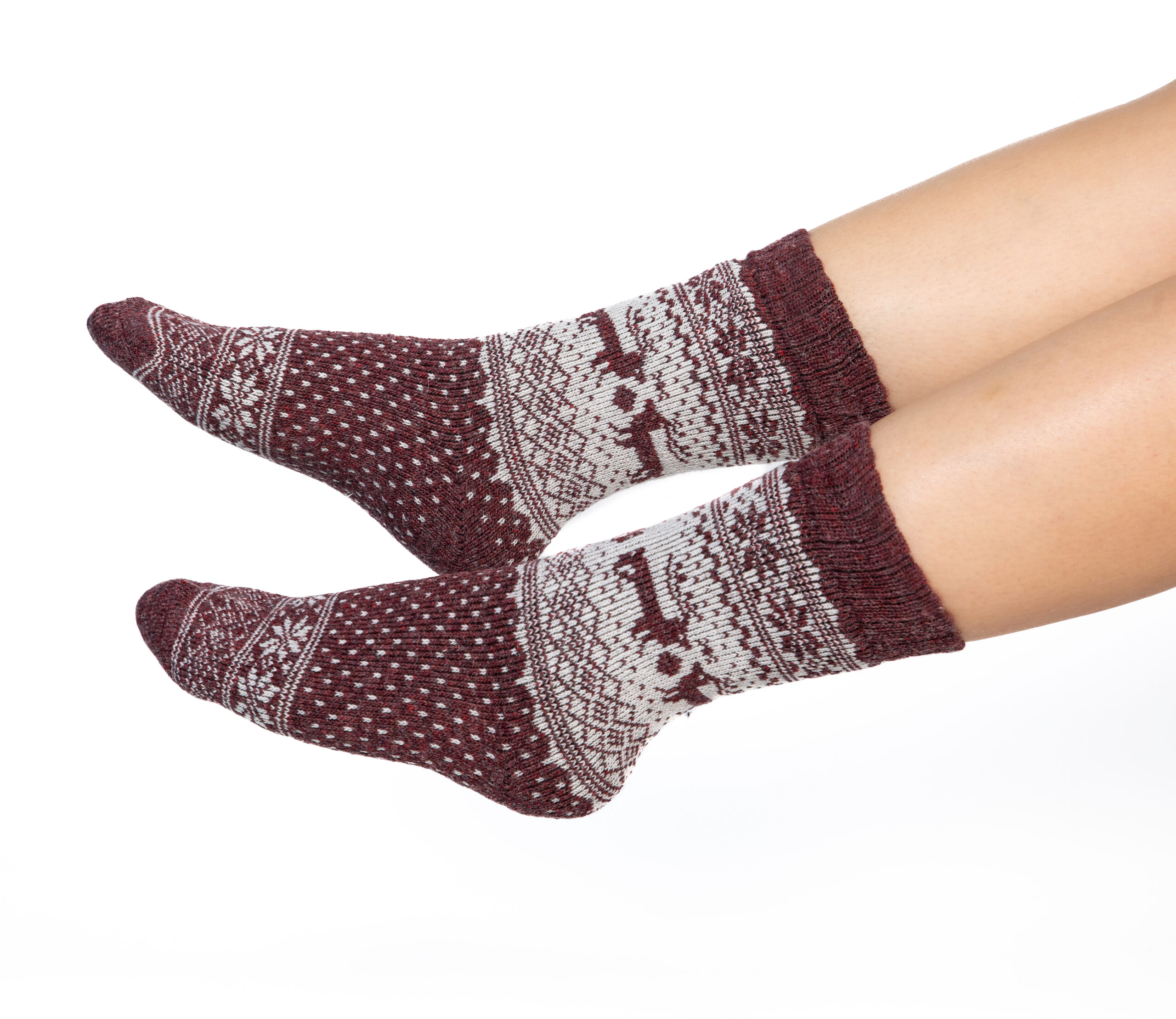 Witaj w świecie wygody, gdzie każdy krok jest przyjemnością dzięki naszym skarpetom z alpaki i wełny. Ta bordowa para, ozdobiona świątecznym wzorem, jest nie tylko eleganckim dodatkiem do zimowej garderoby, ale także obietnicą ciepła w mroźne dni.