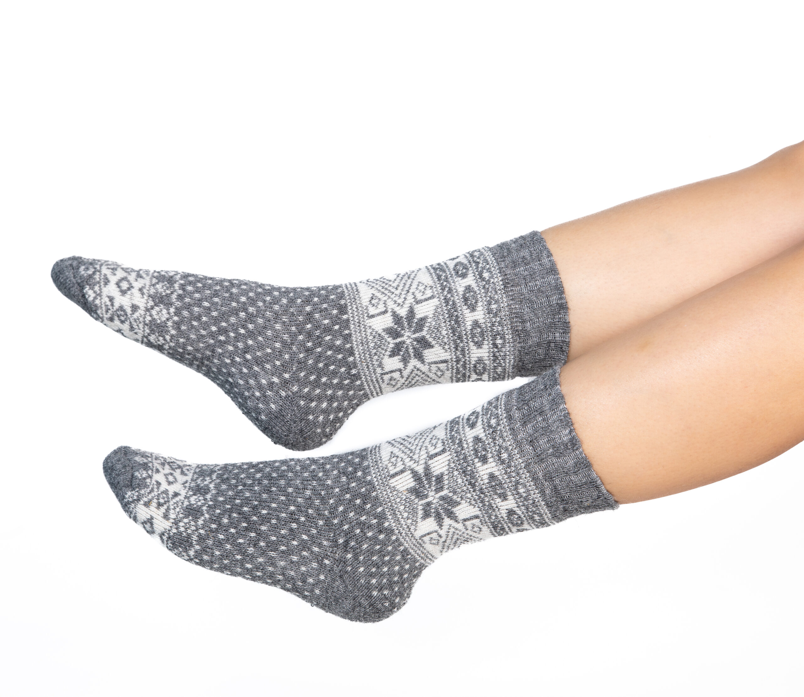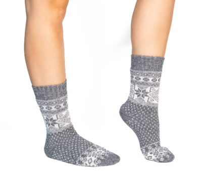 Skarpety z Alpaki i Wełny – Świąteczne – Szare