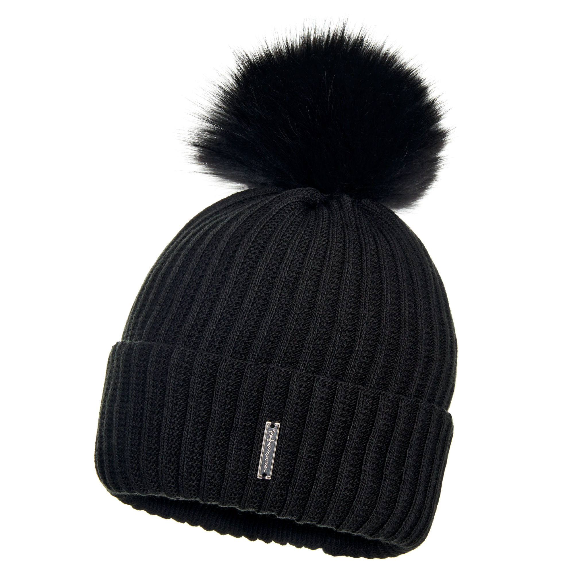 Wełniana Czapka Damska Czarna z Pomponem – MEGI